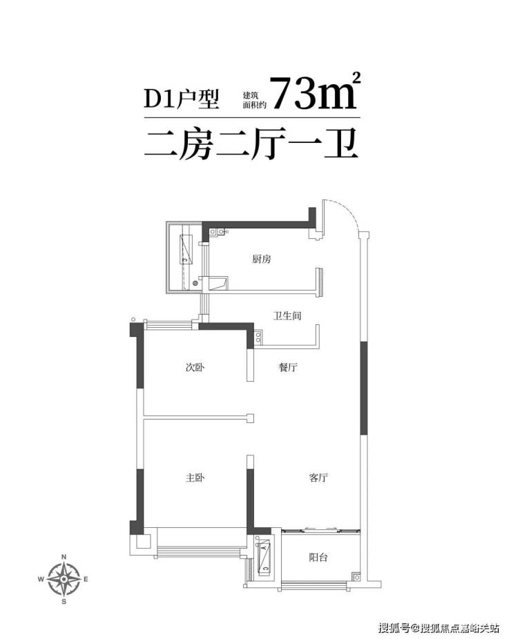 建筑面积约73㎡舒适两房一卫 ,年轻家庭的向往