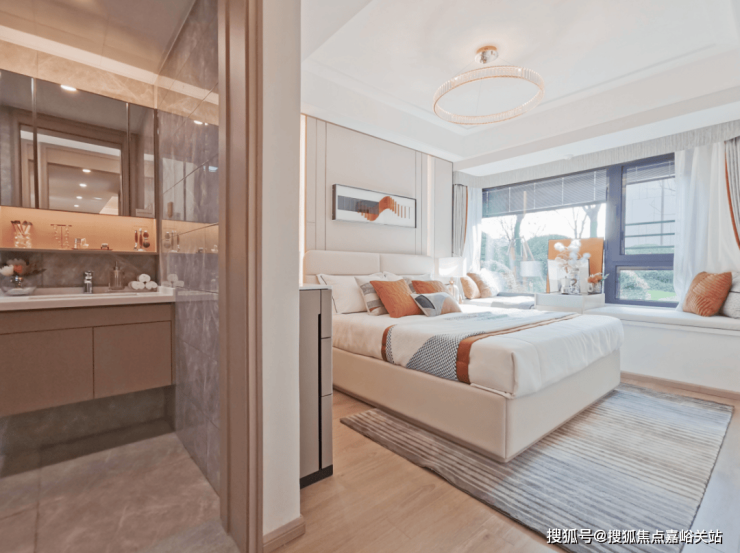 主卧套房设计,主次卧均带大飘窗,主卧为270度“转角”飘窗,享受更多阳光;