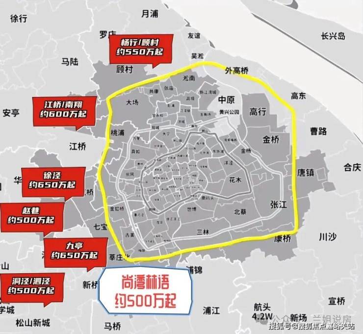 青浦徐泾均价约650万、青浦赵巷均价约500万、松江九亭均价约650万、松江泗泾/洞泾均价约500万;