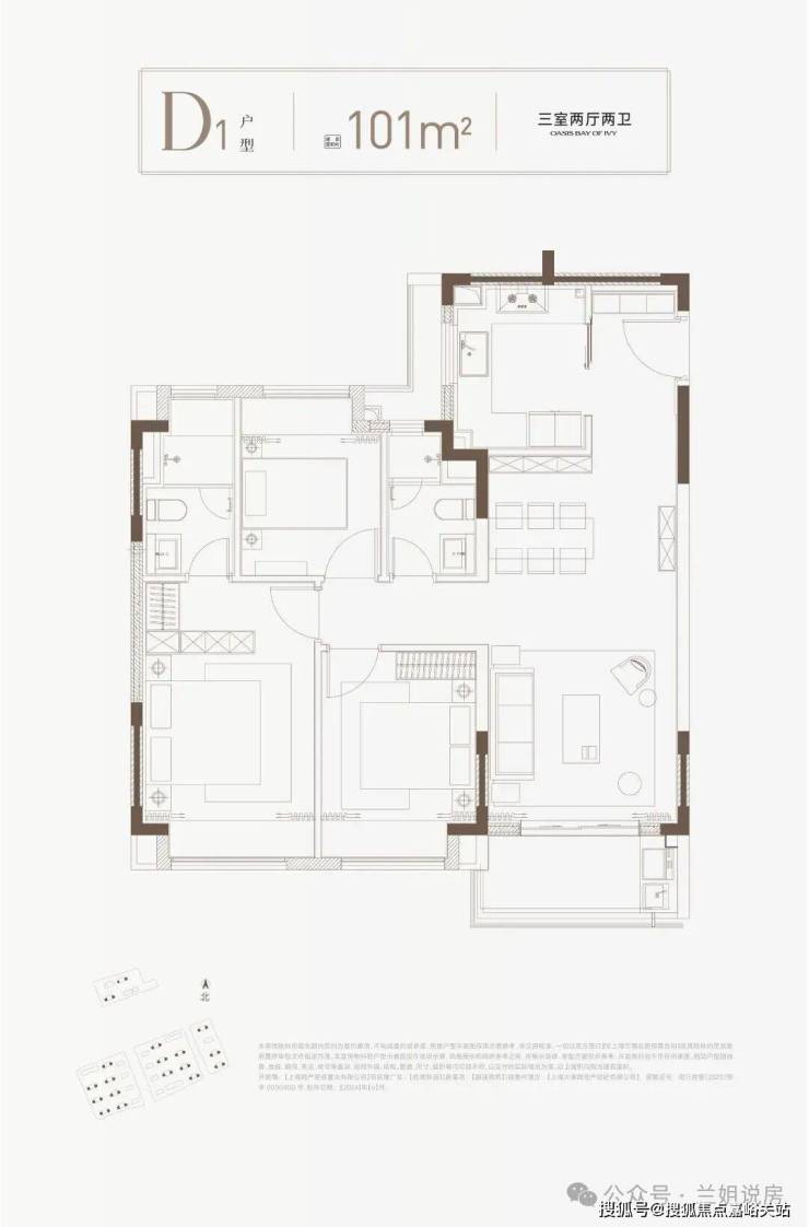 建面约100、101平3房产品明星户型!产品得房率高达81%!且拥有“好房子”标准的3米及以上层高!