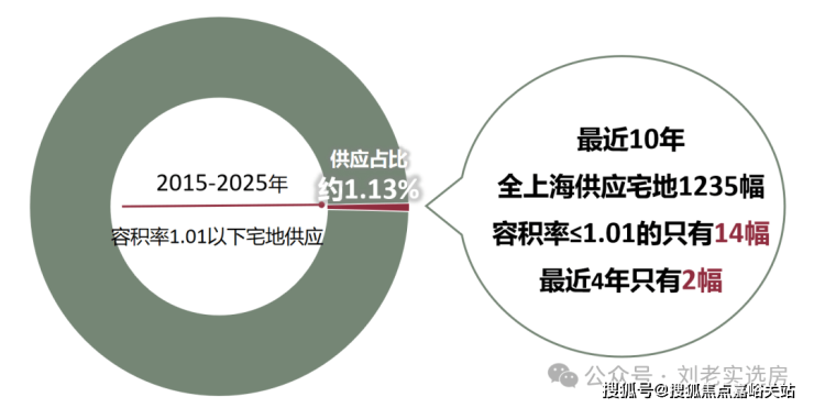 据上海土地市场数据统计, 纵观上海近10年土拍,容积率低至1.01的住宅用地之和,占比仅约1.13%!