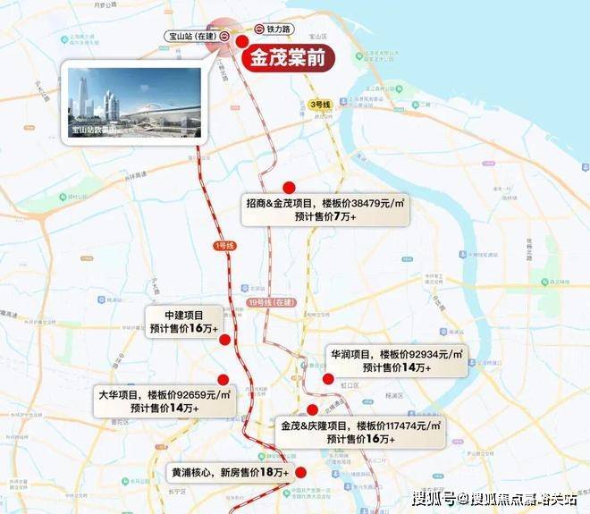 第三,价值底盘扎实 ,宝山站城融合TOD5.0项目,宝山站(在建中)+19号线(在建中)+合生汇(已签约),金茂品牌溢价等多重优势加持,使金茂棠前拥有持续增值的底层支撑!