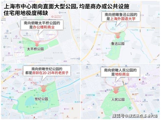 公园边界有限: 公园的周长是固定的,能真正“直面”公园(而非斜视、侧视、有遮挡)的土地面积极其有限