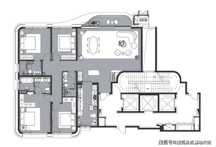约388㎡大平层 ,三梯两户,尽显尊贵: