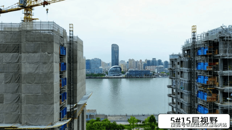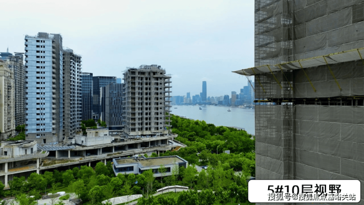 5#楼按照现场视野模拟,由于南侧1#楼的遮挡,若要纵览比较全的江景,需要20层及以上。
