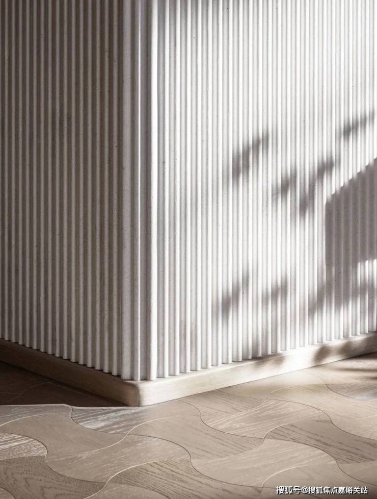 细节之处,连墙板, 都是用天然石材打造 ,造型如同江面泛起涟漪: