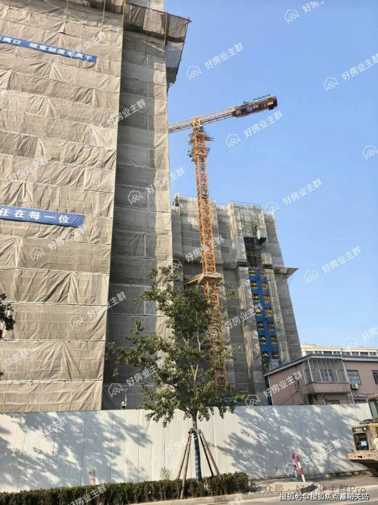 目前各楼幢主体结构还未封顶,施工外架未拆除。