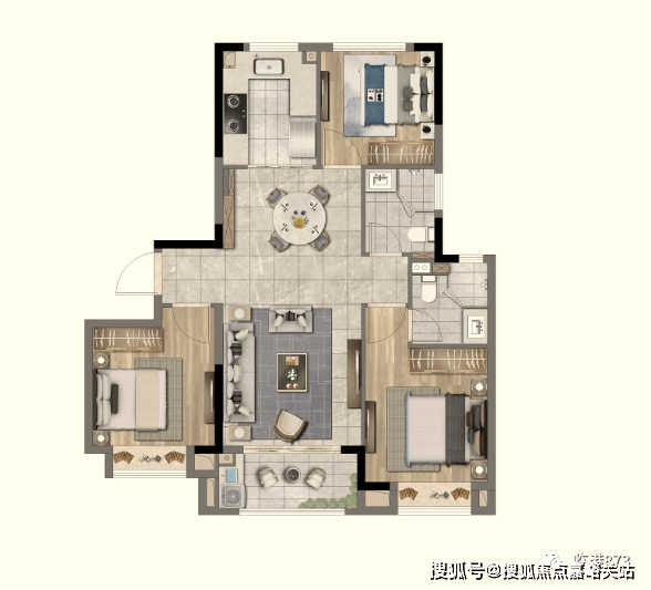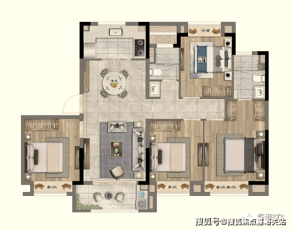面积段为约95-119平(95平、105平、115平、119平)3-4房,精装修交付。