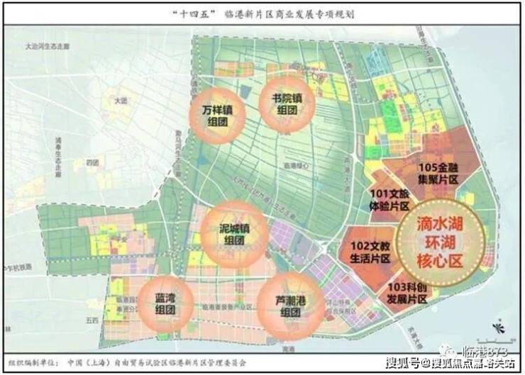 103区域是临港新片区的城市核心功能区,总面积约10.3平方公里,由顶尖科学家社区、科技创新社区、科创总部湾、科创智慧社区、国际创新协同区五大板块组成。滴水湖畔将建设地标塔楼,凸显面向湖面的天际线,环湖头排建筑形成有韵律感的环湖景色,类似于“陆家嘴”。