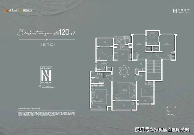 建面约120㎡3房2厅2卫: