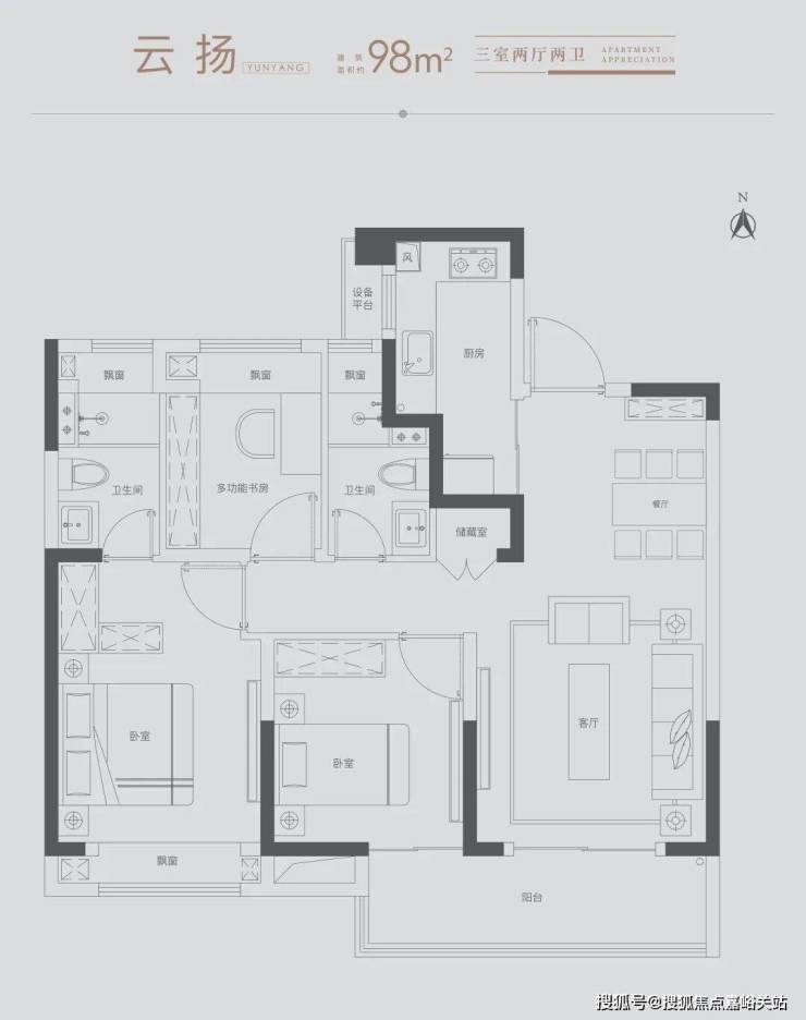 雅致三房:满足三口之家所需,北向房间可改造书房,理想生活一步到位