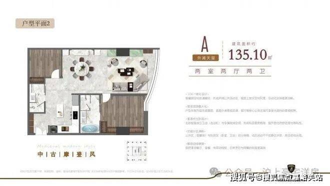 135.1㎡ 两室两厅两卫✅✅兰博基尼酒店售楼处电话:400 - 8824 - 258✅✅