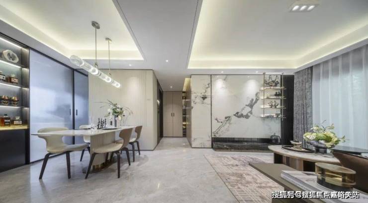 金茂定制壁布/墙纸:结合芬迪白岩板打造的客厅背景墙,营造独特的归家氛围。
