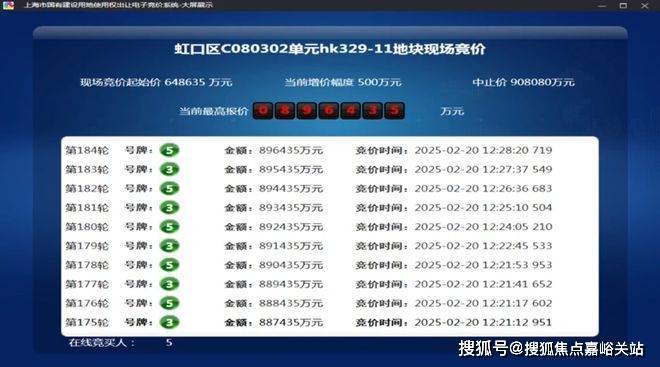 2025年2月,今年第一批次土拍中,经过 184轮竞价, 金茂&庆隆联合体以总价896435万元竞得 虹口C080302单元hk329-11地块,溢价率38.2%,折合楼板价117474元/㎡,装修标准不小于4000元/㎡。