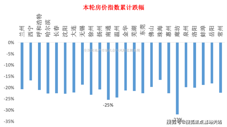 廊坊跌幅最大,达 32%,也是全国本轮跌幅最大的城市;