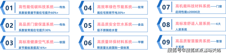 有着高性能低碳科技系统、高品质安全饮水系统、高品质智慧服务系统等“玖”维高能系统。以能耗水平远低于常规建筑物的建造标准,让房子能耗更低、碳排更少、居住体验感更佳。