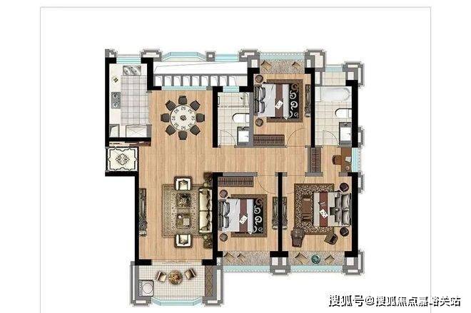 135㎡ 3室2厅2卫:三面朝南,南北通透,主卧带独立卫浴和衣帽间。