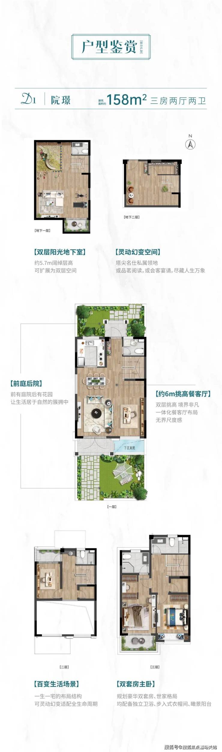 同时更缔造出建面约150-160㎡别墅低密住区与90㎡洋房,包括3F联排别墅+5F臻品叠墅+8F墅质洋房等低密居住形态,无一例外都是高端纯粹的产品。其中联排别墅更是打造出了前庭后院的森活场景,并赋予了约6m挑高餐客厅、双层地下室、双套房主卧...产品力十足,可以说是松江天花板级的空间品质。