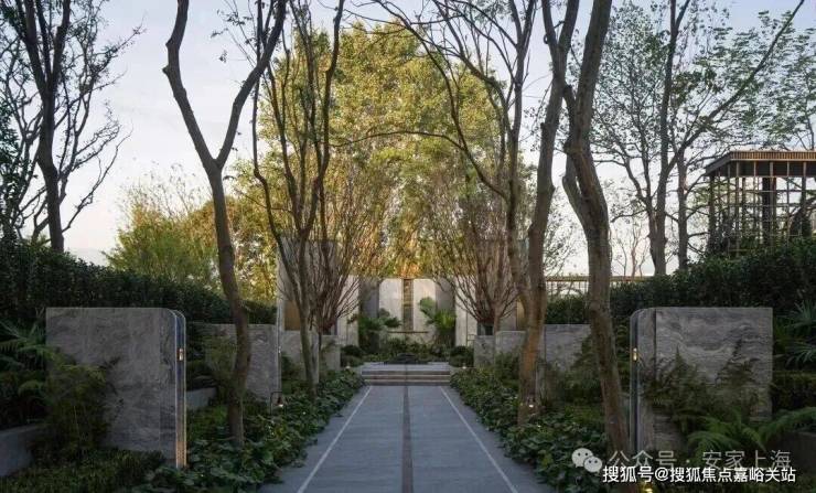 借鉴思南公馆经典的三重归家礼序,项目巧妙利用原始地形打造拥有约2米高差的归家台地,特别设计"三升九阶"的三段式台阶,寓意"步步登高、层层递进、终臻圆满"。