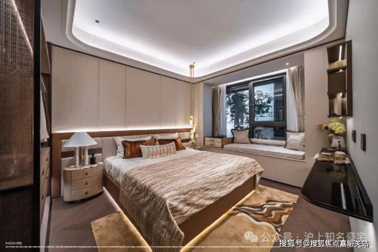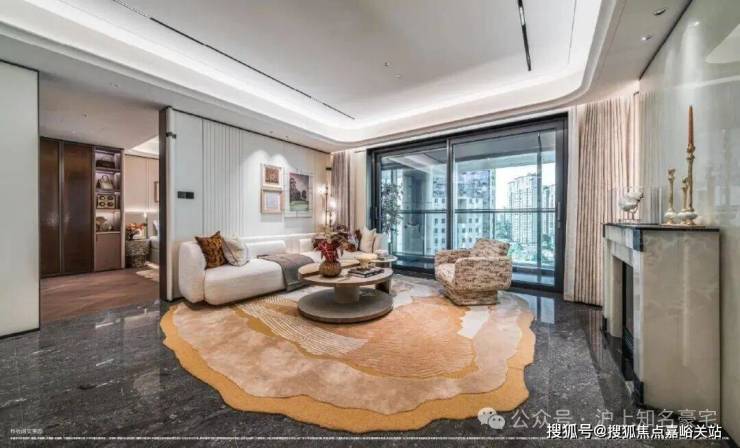 卧室则铺设海派鱼骨拼花地板,借木质肌理的温润与细腻,营造出私密领域的宁静氛围!这种“公区显质感、私域藏温度”的材质分区逻辑,恰是高端住宅设计中至关重要的一笔!