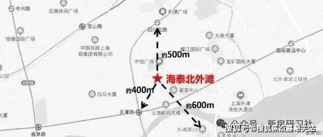 从地理坐标看,海滩北外滩直线距离外滩源仅600米,步行可达外白渡桥、上海邮政大楼等海派文化地标;