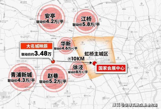 总体而言,大名城映辰二期的区位优势相当突出,示范区线(在建)+崧泽高架+17号线均可直通虹桥,而均价只有(备案均价)约34800元/㎡。
