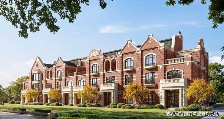 联排别墅采用英式维多利亚建筑风格,红砖与德国米黄干挂石材的搭配,形成温暖且经典的色调;经典长窗/方框窗/八角窗/拱形造型/坡屋面,赋予建筑精巧自然的美学质感。