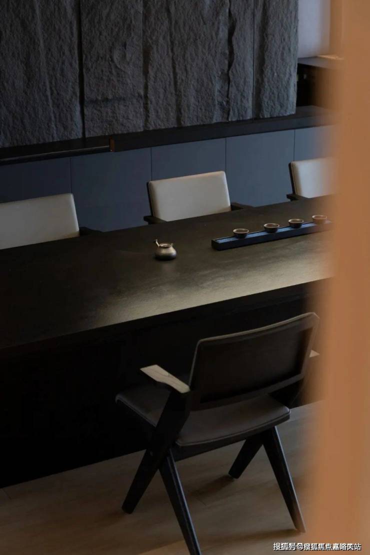 在设计中追求开放行也追求更加质朴纯粹的调性,在空间配色中局部以深色凸显出木的温润,将原木质感发挥到极致。