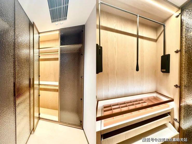 L型衣帽间同样是交付标准, 下拉式衣架、感应灯光十分人性化~