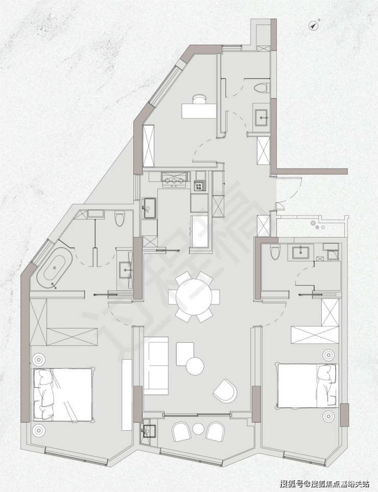 建面约129㎡3房2厅3卫户型▼