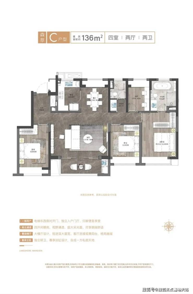 建筑方面,项目11-14层小高层错落分布,一梯两户双开门设计,做到了一梯一户的设计功能,保证了业主较高的居住舒适度,而且建面约100-136㎡户型还可以享受私属电梯厅这等豪宅标配!