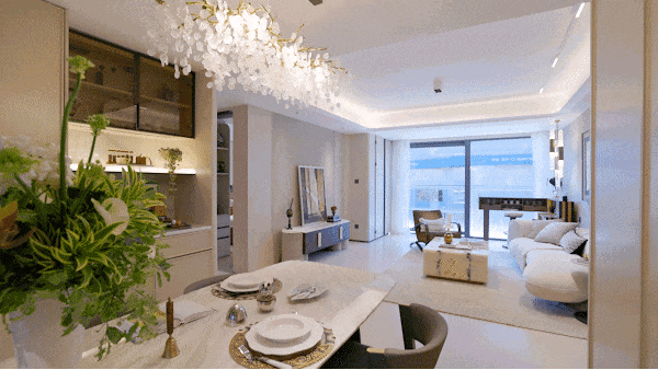 建面约 145㎡户型以 270°转角飘寄搭配超高窗墙比解锁超广角视野,将无限景致“拉”至眼前。城市的璀璨天际、静逸的河景、灵动的山水庭园,点亮窗前,让生活的每一刻都浸润在自然与开阔之中。