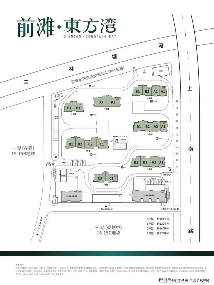 据悉: 1站前滩,浦东三林永泰三里城二期【前滩·东方湾】将推建面约103-175㎡3-4房,户型图发布,样板间已开放,即将入市!