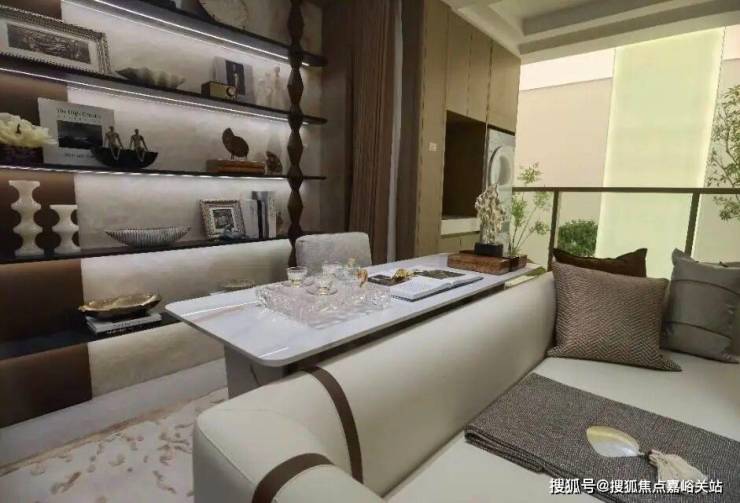 LDKB一体化设计,约5.4米超大面宽客厅搭配同尺度阳台,公区的贯通性被加强,从北到南,厨房、餐厅、客厅、阳台全部打通。