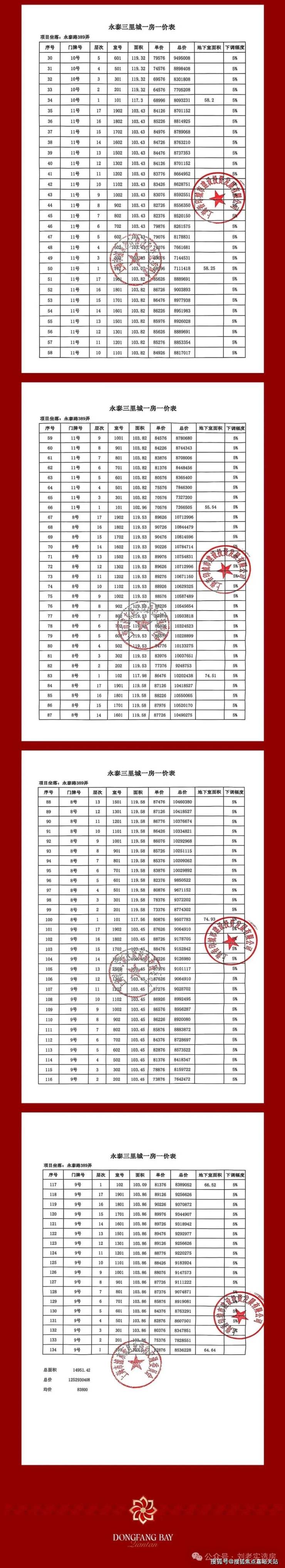 一房一价表如下: