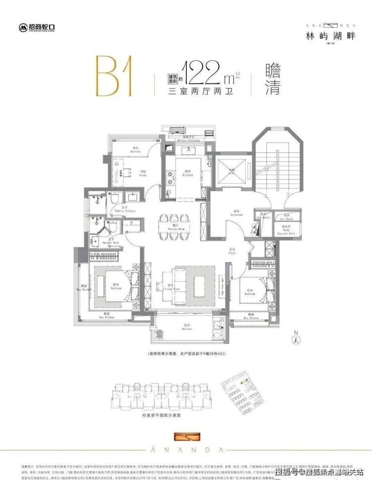 首先来看高层建面约112/122㎡3房: