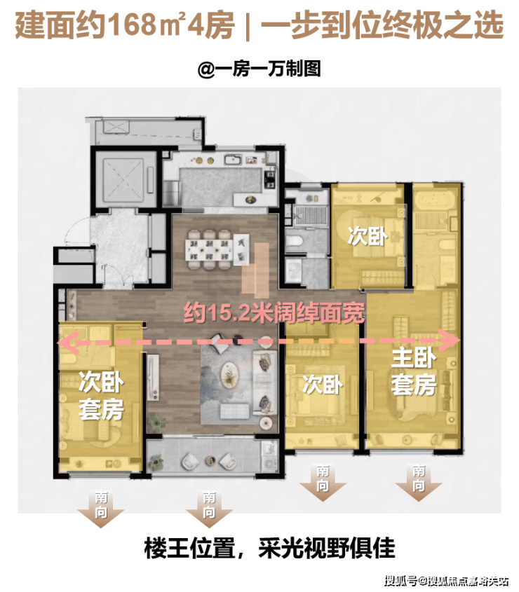 4房设计+南向双套房,堪称是一步到位的终极之选。
