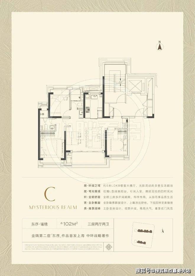 尤其项目建面约102㎡的户型,格局上超越了传统意义的三开间朝南,客厅面宽高达约5米外接差不多尺度的阳台,真正实现3.5开间,让业主起居之间沐浴更多阳光的同时,公区尺度感也直逼其他项目建面约100-120㎡户型。