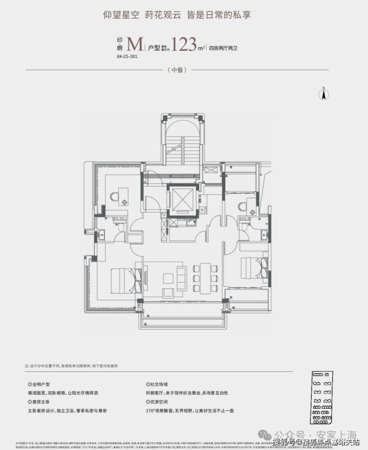 产品是一个新盘立足的根本,这次华发推出的建面约123㎡四房,属实是把改善户型的格局打开了——这个面积段四房不稀奇,但能把独立前厅、全景阳台、花池、四叶草户型这些“豪宅标配”全都塞进去,放眼整个市场都太狠了。