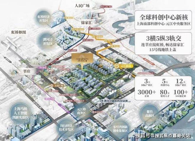 未来将以科创产业为动力,引入100多家五百强企业,吸纳80万全球高端人才,建设商业休闲、优质教育、文化体育、城市公园等综合公共配套设施,打造创新、人文、生态高度融合的中央服务区,引领未来都市理想生活,为闵行描绘一幅充满无限可能的蓝图。