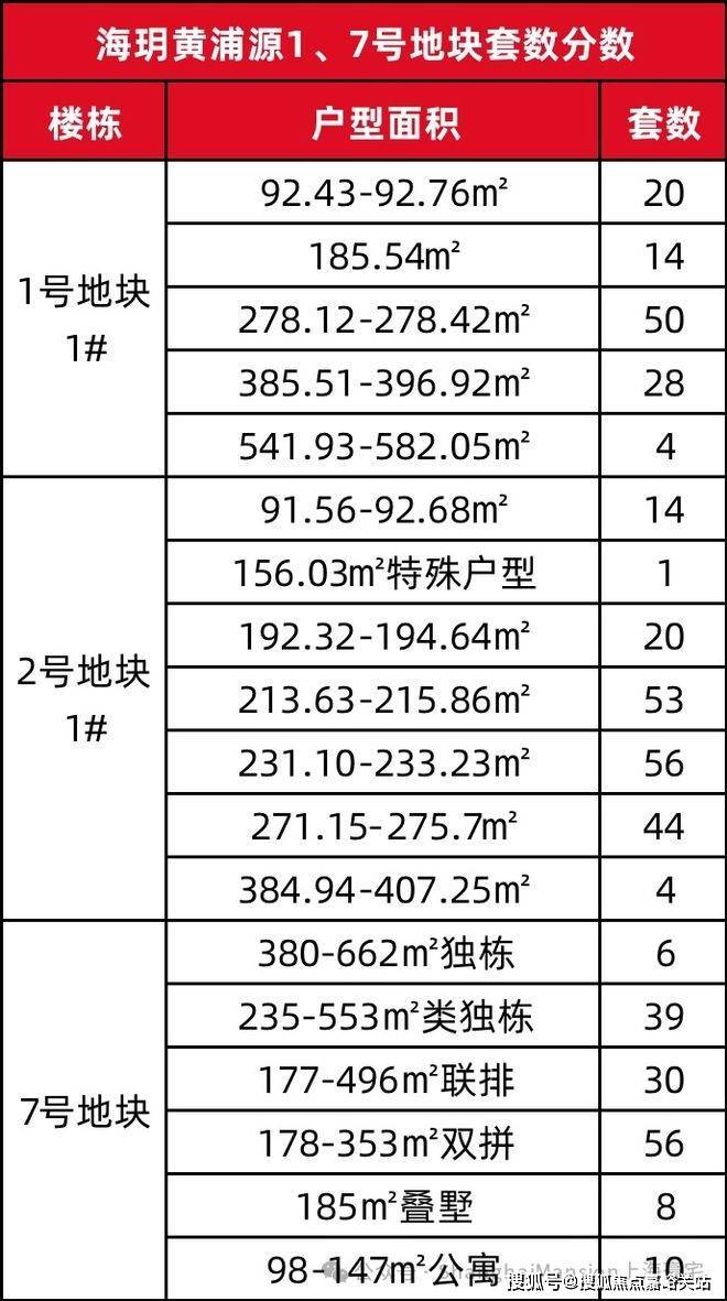 上海建工黄浦新项目「海玥黄浦源」1号地块超高层住宅、7号地块风貌别墅,大致的户型套数分布如下