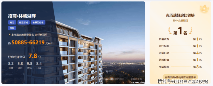 在克而瑞好房点评网上,招商·林屿湖畔综合评分达7.8分,位居“好房比邻榜”榜首,价值潜力、区域价值、医疗配套等核心维度评分均位列区域第一。如今,随着最后89套房源的即将入市,招商·林屿湖畔的销售旅程已进入倒计时。当这最后一批房源售罄后,谁将接过接力棒,成为嘉定新城下一个流量担当?今天,我们就结合最新的市场数据,来深度复盘这个红盘的价值逻辑,并展望未来的市场格局。
