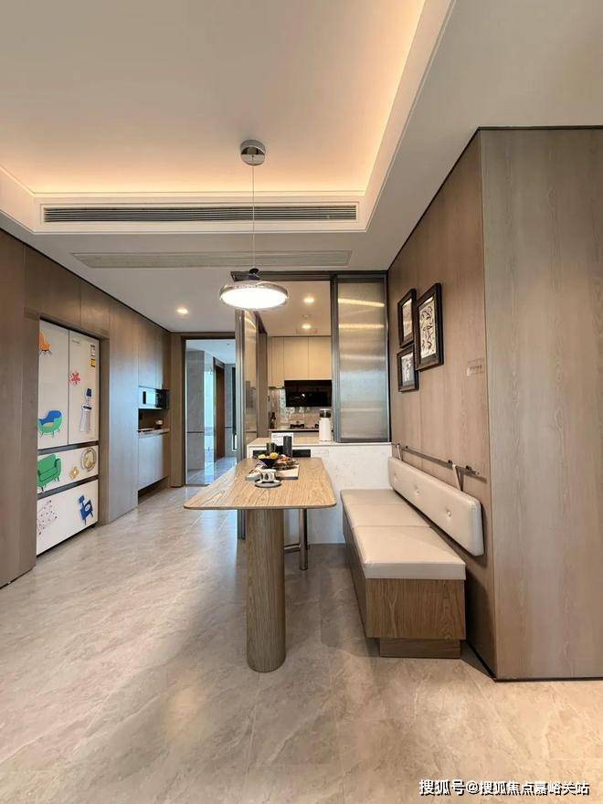 金地嘉峯汇售楼处电话4008569058☑️☑️LDKB一体化设计。通过金属玻璃移门和岛台联动,达成餐厨一体,增加家庭成员互动。烟道外置以及S墙内嵌设计,优化空间布局,提升台面使用感和转角柜使用频率。金地嘉峯汇售楼处电话4008569058☑️☑️