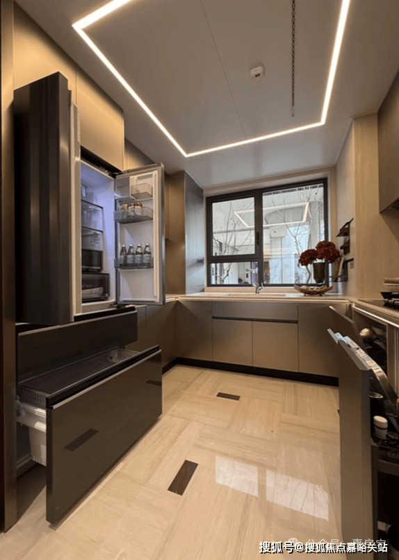 另外蒸烤一体机放置在餐边柜位置,且升级为美诺品牌;