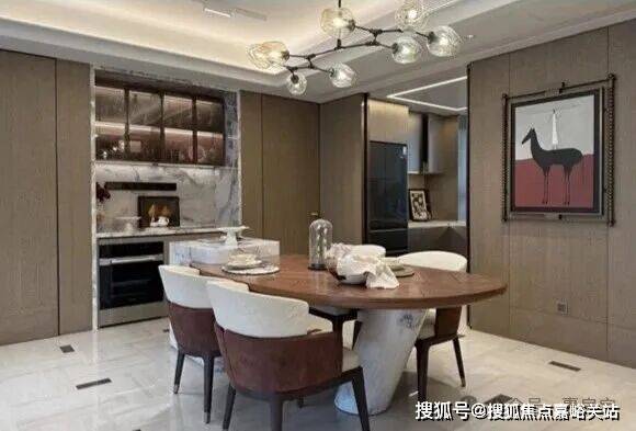 餐厅区域可轻松放置6人位餐桌,两侧还预留储物柜以及餐边柜空间 ,其实哪怕摆放一个8人位的大圆桌,也绰绰有余!
