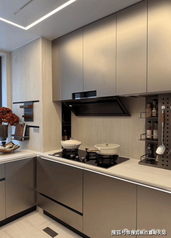 餐厅另外一侧通顶收纳柜同样为交付标准! 140户型相比较于120户型,厨房空间更为舒适,