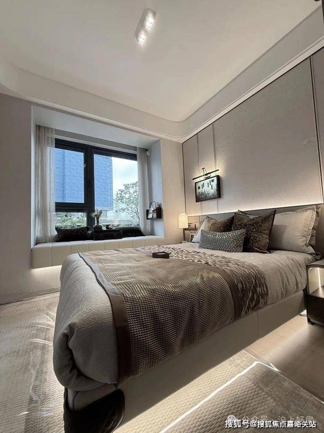 尤其是主卧大套房安排上独立衣帽间+独卫,配上270度的转角飘窗,一扇窗就是一幅流动的四季自然画。