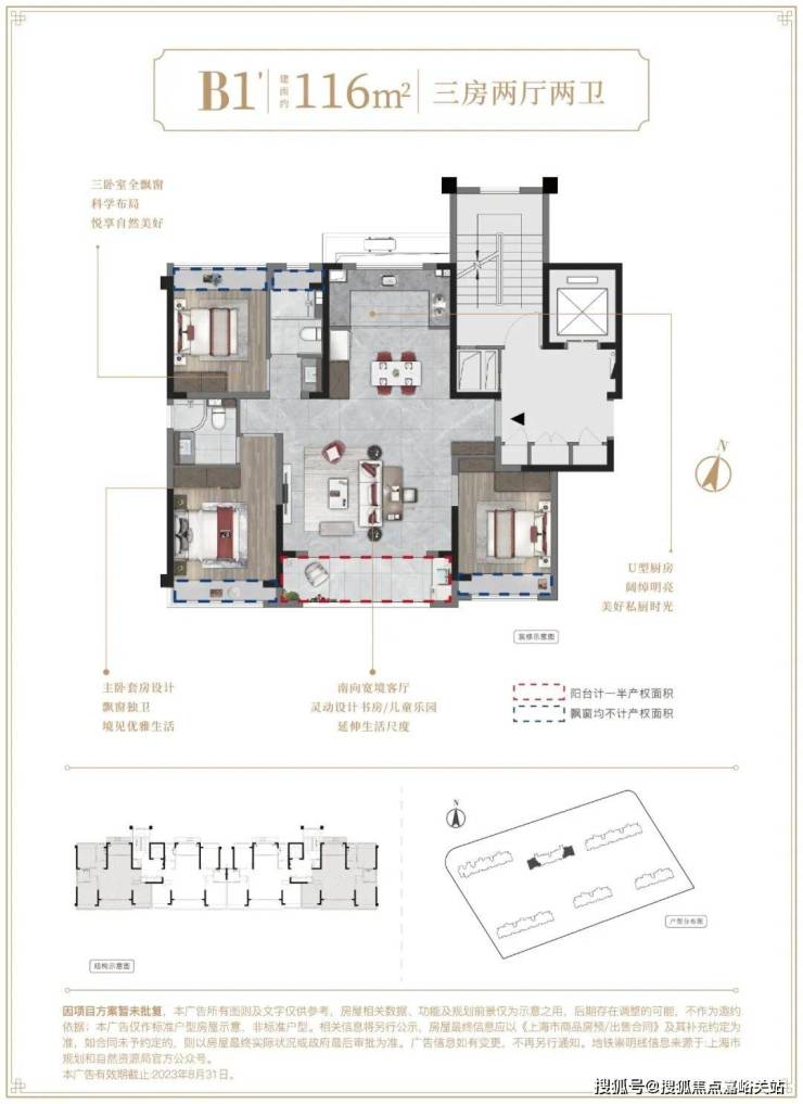 建面约95/116㎡精装3房
