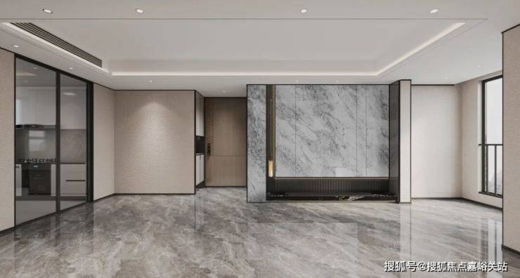 项目建筑外立面主色调为香槟金色与灰色相结合,单元入口部位使用蓝眼睛石材及香槟金色金属;更独特的是,项目 将东方飞檐元素融入现代美学立面 ,形成不落俗套,气质清闲,典雅高贵的现代建筑形象, 截取现代潮流元素的同时,亦不失东方大气恢弘之势。