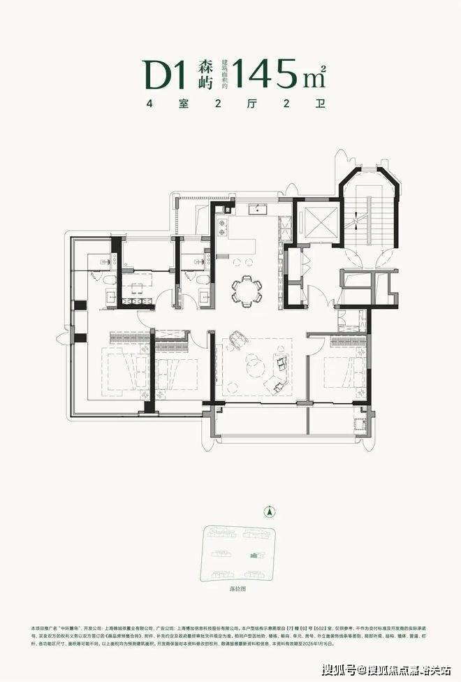 最后是建面约145㎡的4房。